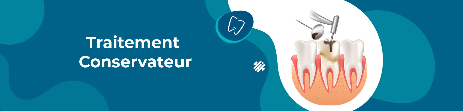 En dentisterie, le traitement conservateur débute par les efforts du dentiste visant la prévention de la formation de la carie et s’étend jusqu’au traitement de la carie formée qui n’a pas beaucoup progressée ou à la réparation du tissu dentaire perdu en éliminant la carie.